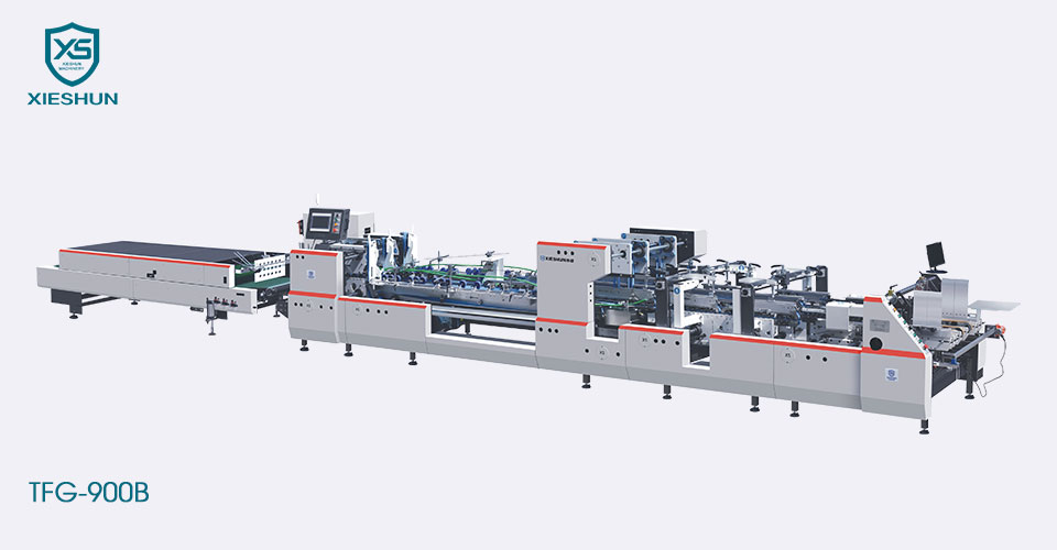 XIESHUN TFG-900B Crash Lock kiire voltimis- ja liimimismasin, sobib sirgjoonelise põrkelukuga põhjakasti jaoks. Võite olla kindel, et ostate meie tehasest kiire voltimis- ja liimimismasina.